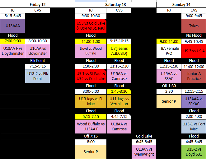 Weekend Game Schedule